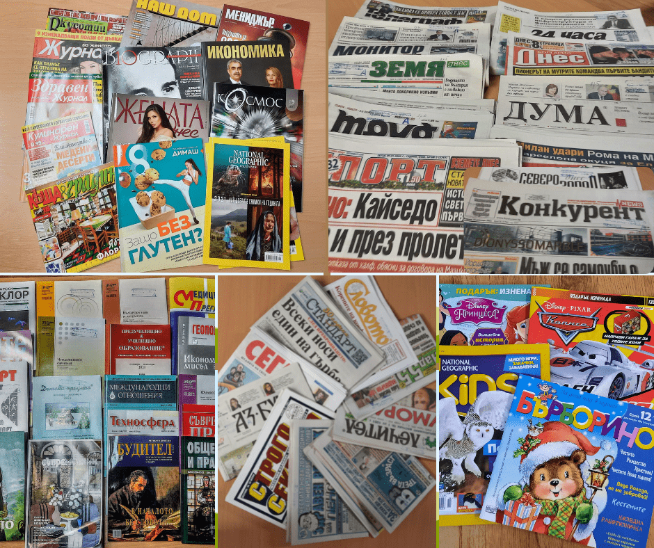 *** Във филиала на РБ „Христо Ботев“ се предлагат следните издания: „Всичко за семейството“, „Журнал за жената“, „Минаха години“, „Бърборино“, „Ванилени вести“, „Космос“.