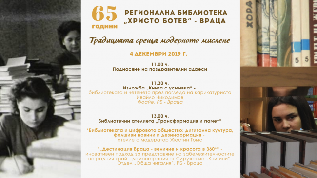 Карикатуристът Ивайло Никодимов подари „Книга с усмивка” по случай 65 години от създаването на Регионална библиотека „Христо Ботев” – Враца. Изложбата от 56 негови творби е подредена във фоайето на културната институция и врачани могат да я разгледат до края на месеца. „Колкото и да се менят времената и нравите на тая земя, словото е…