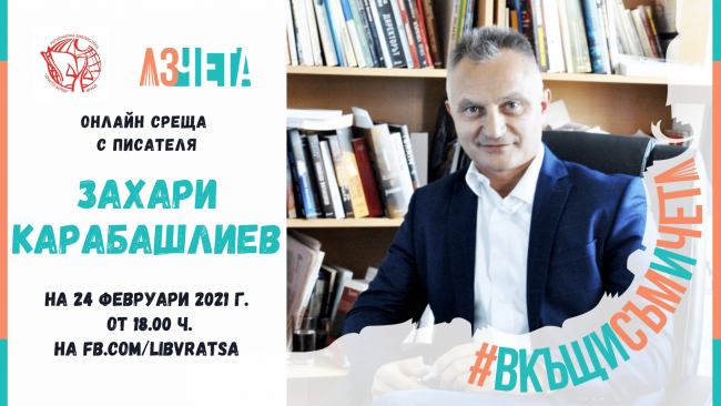 Регионална библиотека „Христо Ботев“ – Враца и „Аз чета” представят Захари Карабашлиев с новата му книга „Опашката“. Шестнадесетата среща от съвместната кампания #ВкъщиСъмИЧета започва в 18 ч. на 24 февруари, а единственото, което трябва да направят потребителите, е да са на линия във фейсбук. Предаването на живо ще се осъществява през фейсбук страницата на Регионална библиотека „Христо…