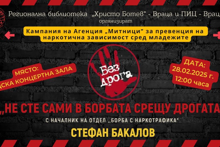 „Не сте сами“, каза пред учениците от Враца началникът на отдел „Борба с наркотрафика“ в агенция „Митници“ Стефан Бакалов. Той гостува в града, заедно с колегите си, като част от кампанията на Агенция „Митници“ за превенция на наркотично зависимите сред младежите. Събитието, организирано съвместно от Регионална библиотека „Христо Ботев“ и Превантивно-информационен център към Общинския съвет…