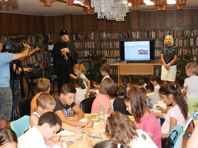 Кои са основните елементи, които трябва да присъстват при изобразяването на светец, научиха участниците във второто будителско ателие, посветено на Св. Софроний Врачански. Специален гост на работилницата в Регионална библиотека „Христо Ботев” – Враца беше Негово Високопреосвещенство Врачанският митрополит Григорий, който отговори на въпросите на всички деца, свързани с организирания от Врачанска митрополия конкурс за литература и изобразително изкуство на тема: „Св. Софроний Врачански – ярък духовен пример от миналото към настоящето и бъдещето.“ Той обясни на децата защо е важно да почитаме светците и подари на всяко от тях по една картичка с икона на Св. Софроний Врачански. За екипа на РБ – Враца митрополит Григорий беше подготвил щедро дарение на детски книги и луксозно издание на Библията.